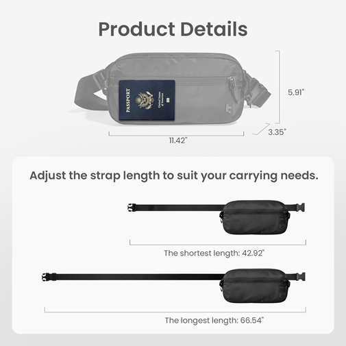 Lagano i udobno nošenje: Ergonomična podesiva naramenica omogućava nošenje preko ramena, preko grudi ili oko struka, u zavisnosti od potreba korisnika.